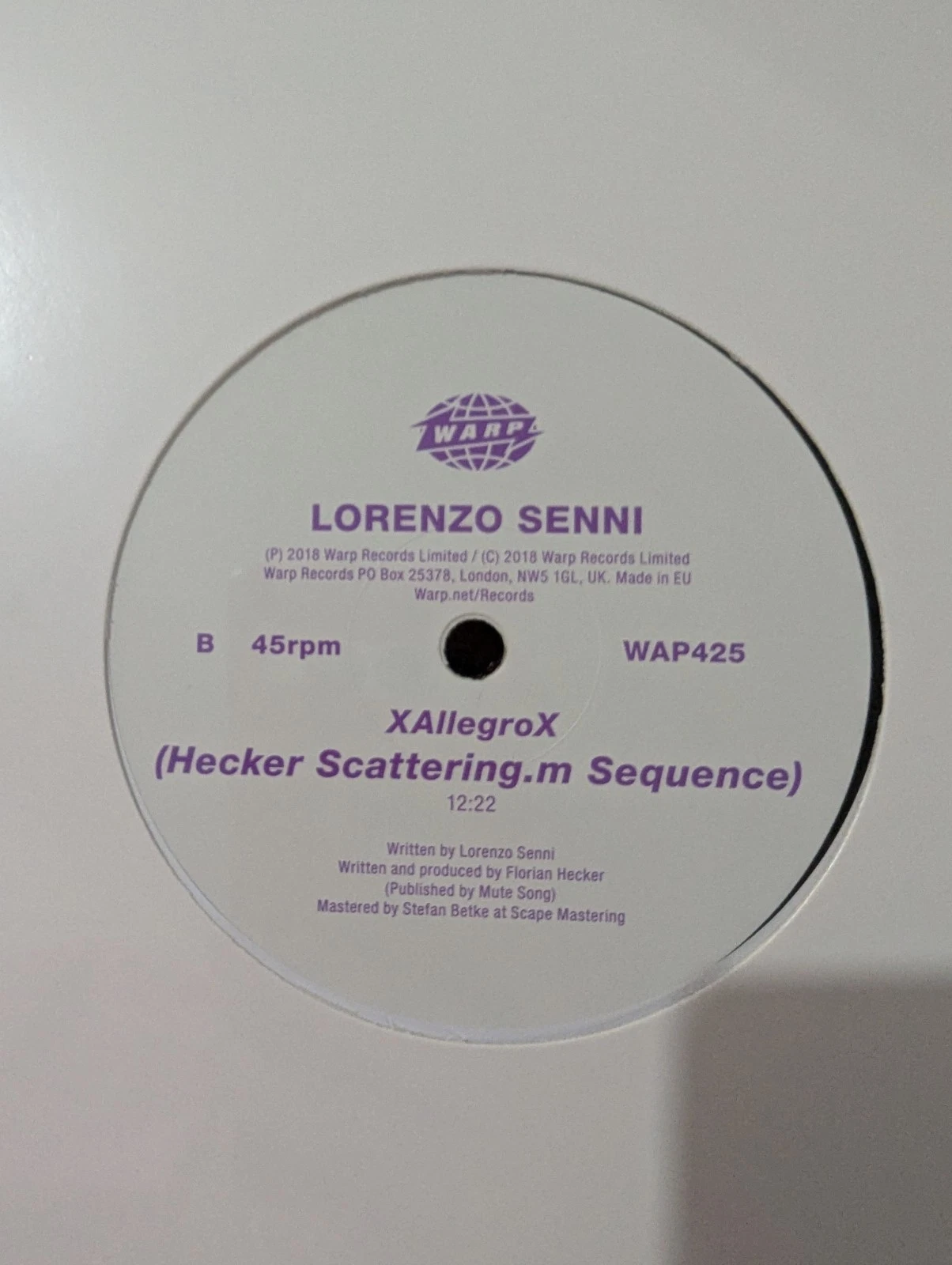 12″ Warp Records – WAP425 2018
